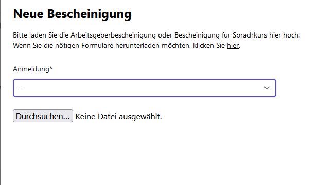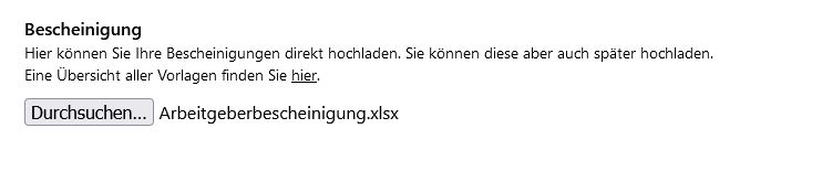 1.1 In der OGS-Anmeldemaske gibt es eine Upload-Box für Bescheinigungen. Klicken oder tippen Sie auf “Durchsuchen…”